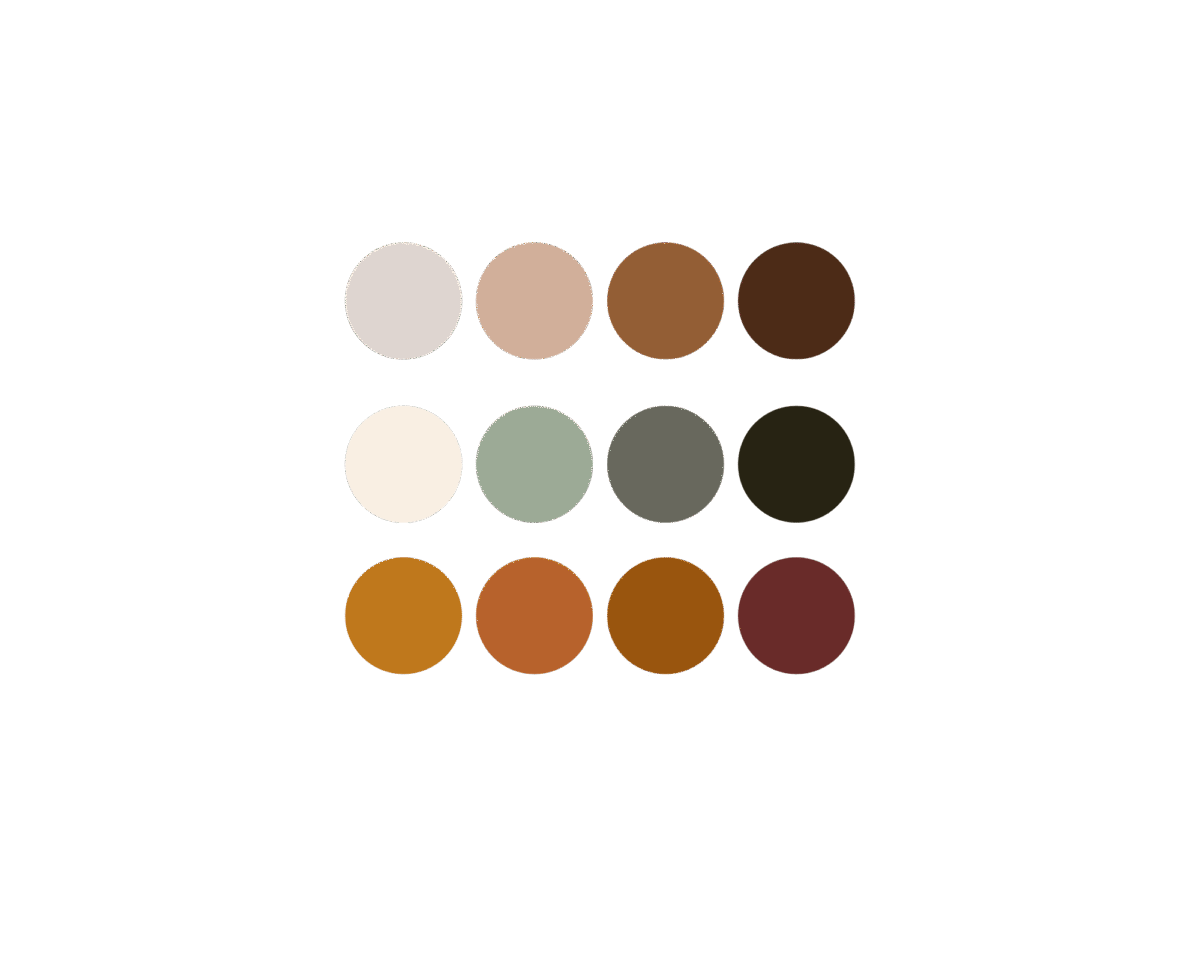 • Cream + rust + olive
